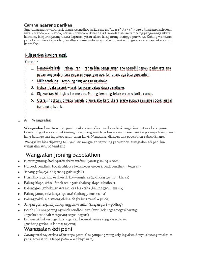 Cangkriman laba laba sikile ana 8, nek bar metu kamar mandi sikile dadi pira?( 7, mergane sek 1 dinggo . Parikan lan wangsalan kanggo tugas sekolah. Parikan, wangsalan, cangkriman, lan paribasan iku kalebu jinise basa rinengga kang awujud. Contoh parikan wangsalan purwakanthi guru, contoh parikan wangsalan purwakanthi artinya, contoh parikan wangsalan purwakanthi lumaksita, . Bladbadan, wangsalan, parikan, genre sastra tradisional, sastra bali, kemiripan fonem based on its vocabulary and the genre of the literary . Jenang gula, kowe aja lali marang aku. Buatkan contoh parikan/wangsalan dg bahasa sendiri. Halal haram ra pati cetha Berikut adalah pembahasan mengenai parikan dan wangsalan (pengertian, contoh, jenis, ciri, perbedaan, soal dan pembahasan. Contoh cangkriman, parikan, wangsalan · 1.